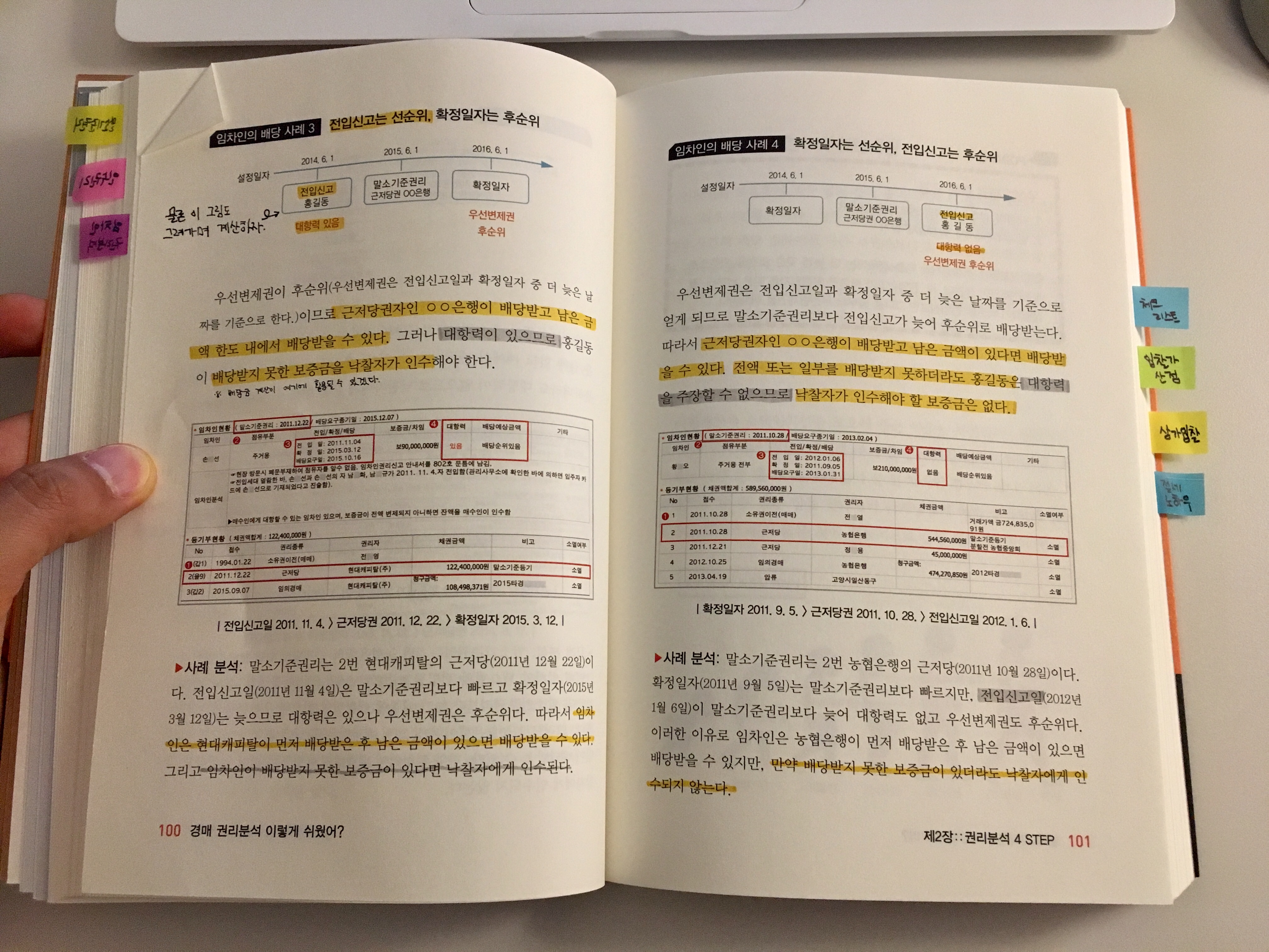 2. 경매 권리분석을 하다보면 알 것 같지만 아리송한 부분들이 있습니다. 하지만 맨 아래의 사진 예시를 보시듯 권리분석에 대해서 명쾌하게 설명해주셨고 더불어 많은 예시를 더불어 주셨습니다. (감사합니다! ㅠㅠ) 개인적으로 이 책은 몇 번 읽었지만 앞으로도 두고두고 참고할 것 같습니다.