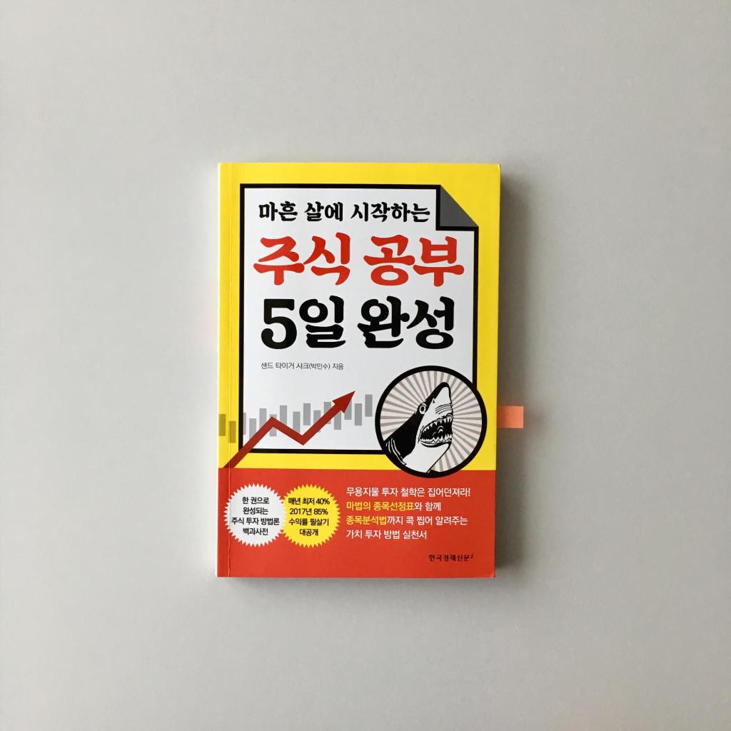 안녕하세요 ^^ 오늘 책리뷰 및 서평으로 소개해드릴 책은 샌드타이거샤크(박민수)님의 마흔 살에 시작하는 『주식 공부 5일 완성』입니다. 주식투자에는 수많은 방법이 있습니다. 그중에서도 오늘은 매일같이 주식창을 안 들여다봐도 되고, 오늘 주가가 올랐는지 떨어졌는지 크게 신경 쓰지 않아도 될 주식투자 방법을 소개해드리겠습니다 ^^