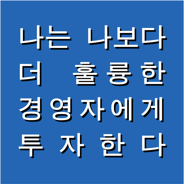 본인이 모르는 사업분야에 대해 본인의 돈을 본인보다 더 잘 불려줄 CEO에게 맡겨 투자한다는 것입니다. 이렇게 저자보다 더 훌륭한 경영자가 저자보다 더 좋은 회사를 운영하는데 투자를 망설일 이유가 없었던 것이죠. ^^