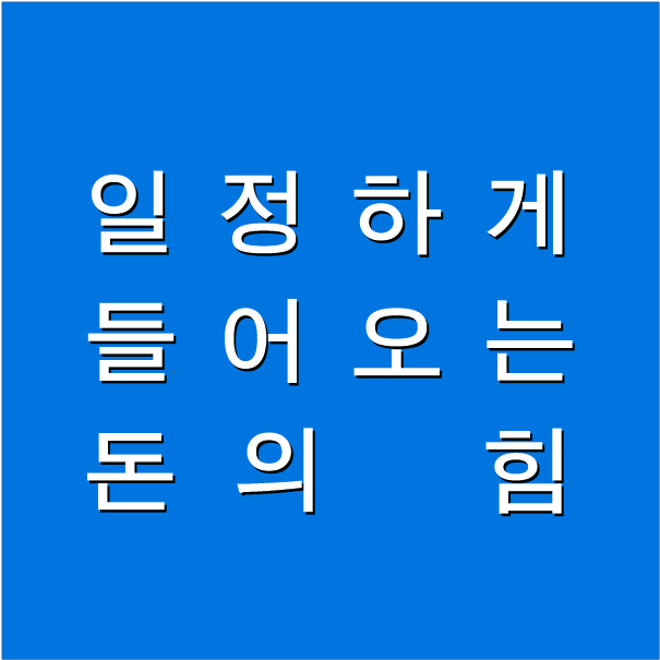 일정하게 들어오는 돈은 어떤 힘을 지니고 있을까요? 요즘같이 코로나19로 경제적으로 많이 힘들 때일수록 꾸준하고 일정하게 들어오는 돈이 심리적으로 안정감을 주는 것 같습니다.
