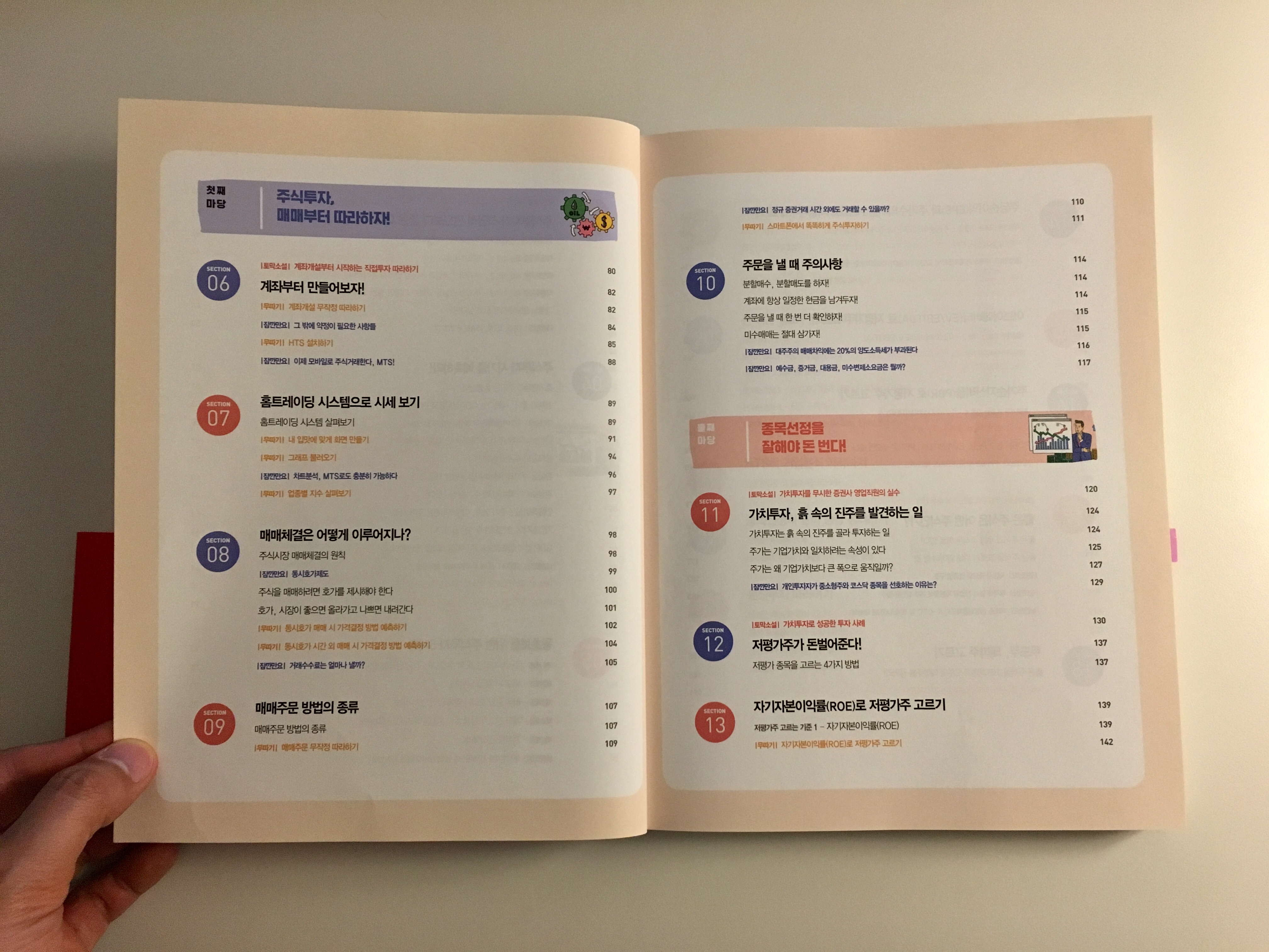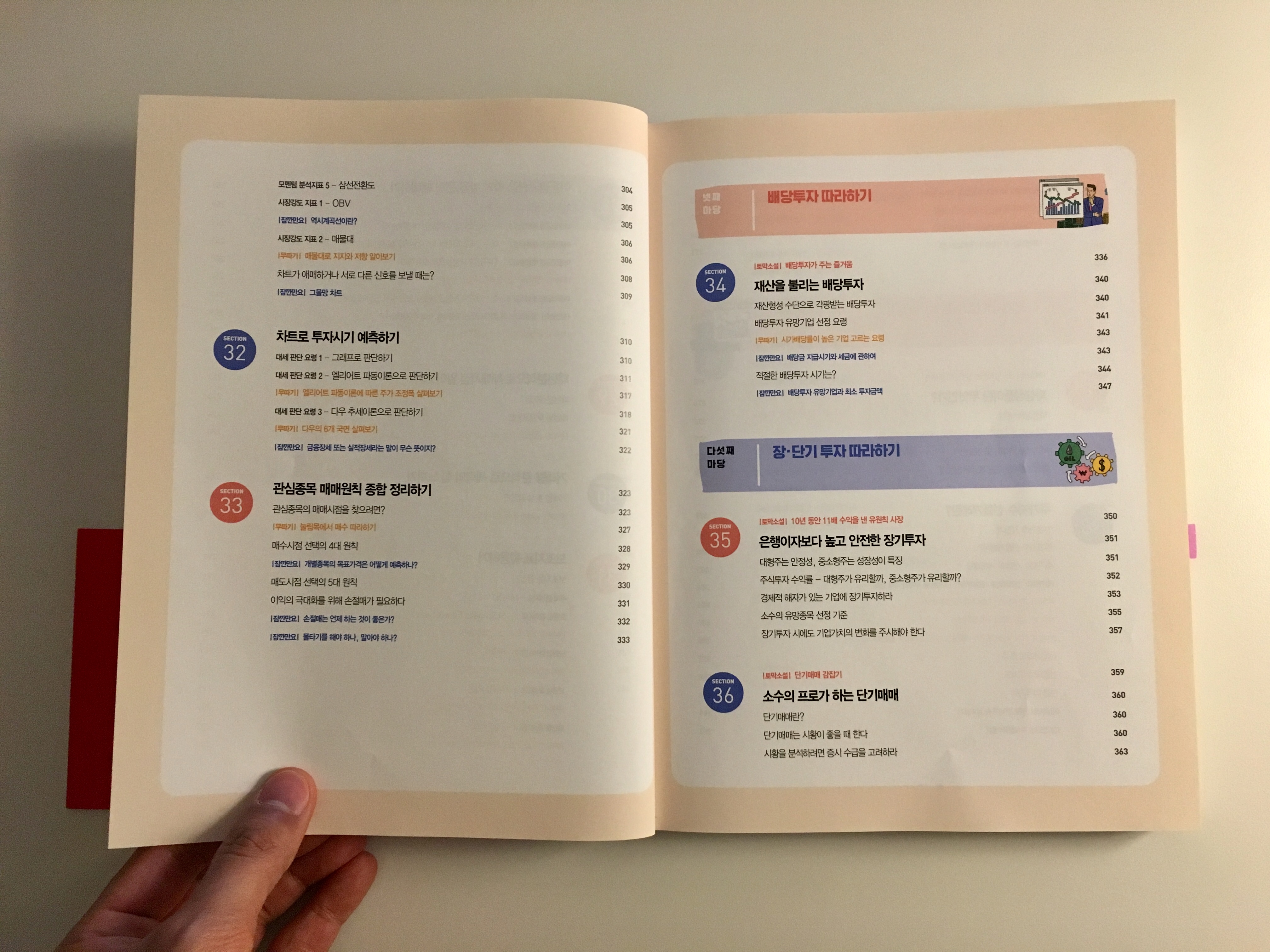 각 섹션별로 보기 쉽도록 내용이 잘 정리되어 있습니다. 더욱이 책 사이즈가 큰 편이어서 차트 등 시원하게 볼 수 있습니다. 이 책을 구입하는데 18,000원이 들지만 그만큼 수익을 낼 수 있도록 도와주고 큰돈을 잃지 않도록 코칭해주는 책이기도 합니다. (투자원칙을 잊고 단타에 손댈 때마다 저자가 일러둔 원칙을 다시 보고 있습니다.)