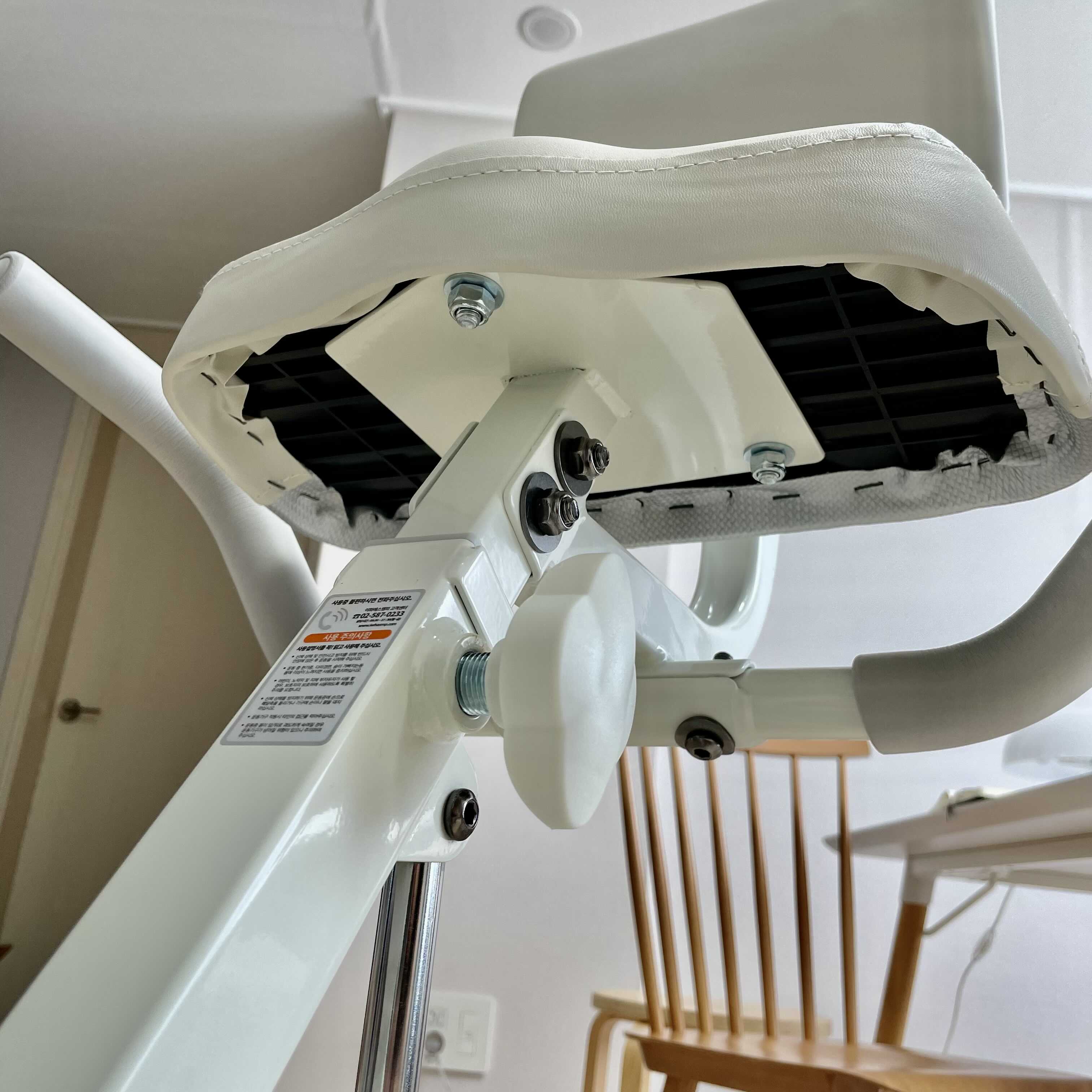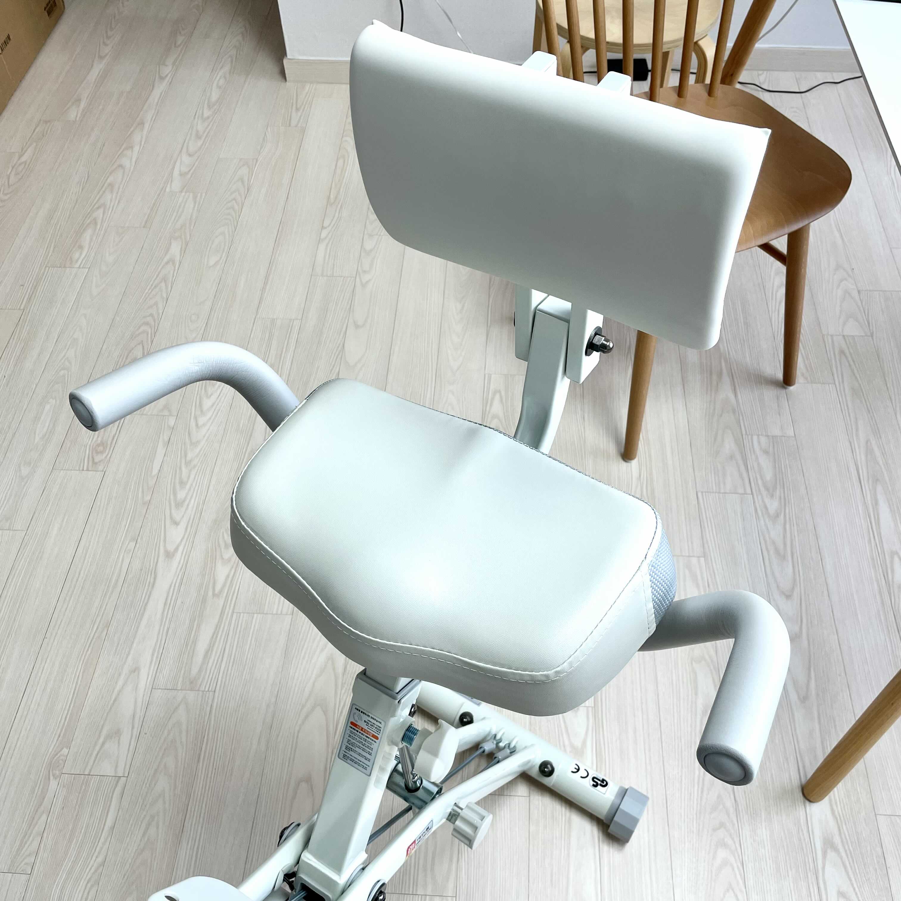안장과 등받이입니다. 안장은 푹시하고 앞뒤 길이가 짧아 오히려 장시간 운동 시 피로감이 덜합니다. 또한 제가 타봤지만 전립선에 큰 부담은 못 느꼈습니다. 안장이 짧아서 딱 엉덩이 양쪽 뼈만 걸치는 기분입니다. 등받이는 힘이 들 때 몸을 뒤로 젖혀 오롯이 다리 근육에만 집중할 수 있도록 도와줍니다.