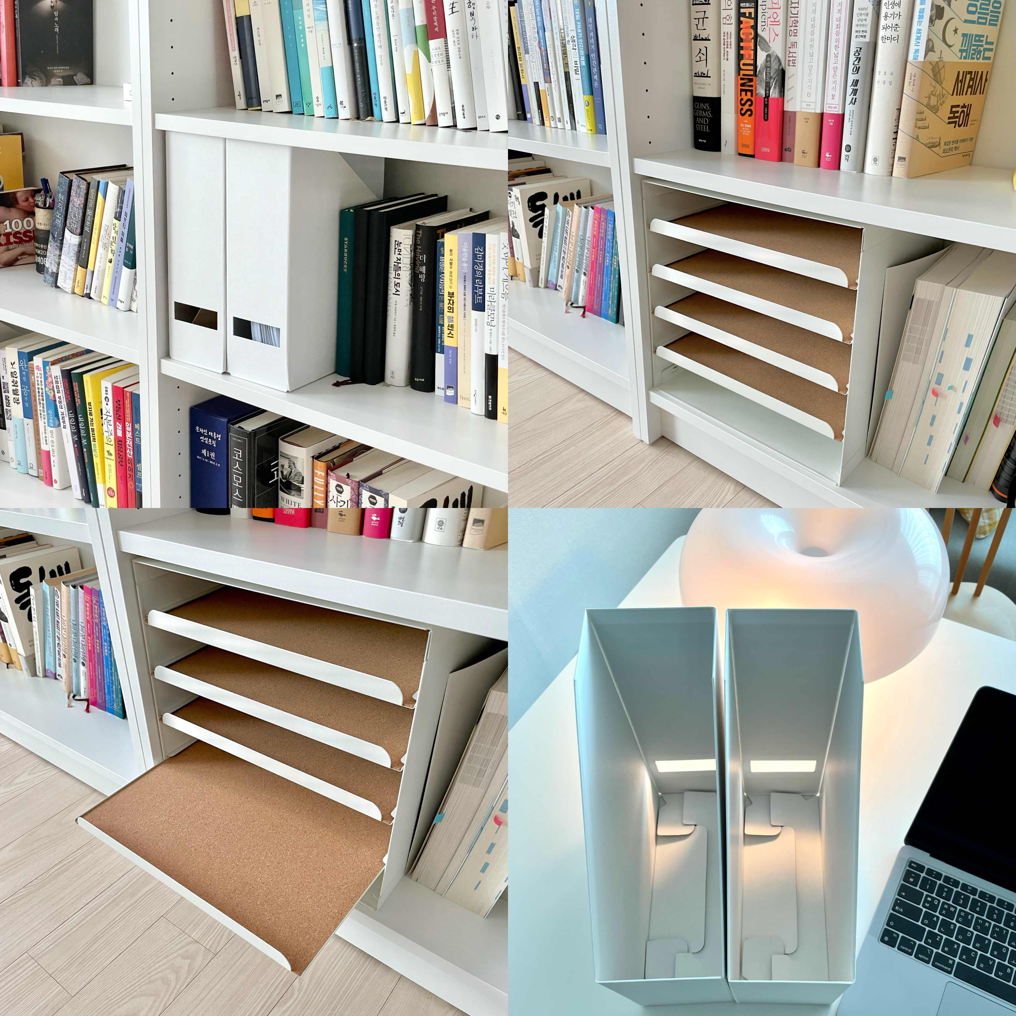 조립해보니 생각지도 못한 호재(?)가 있었는데 빌리책장과 궁합이 너무 잘 맞았습니다. 일부러 그러려고 한것도 아닌데 <셰나 파일꽂이 & 크비슬레 서류함>를 조립해보니 빌리책장에 한치의 오차도 없이 깔끔하게 맞아 들어갔습니다. (호호 이런 행운이!)