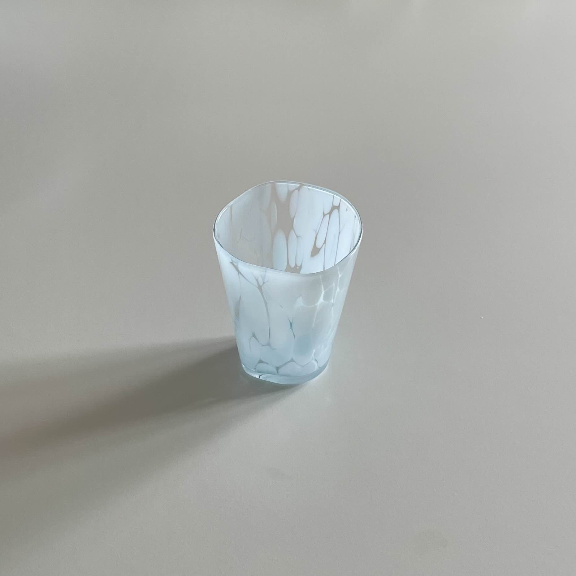 특히 카스카 글라스는 단색 반점의 불규칙한 패턴이 특징인 유리컵 입니다. 입으로 불어 만들어진 제품(Mouth blown glass)으로 전체적인 형태도 완벽한 원형이 아닌 약간씩은 장난스럽게 변형된 모양의 컵 입니다.
