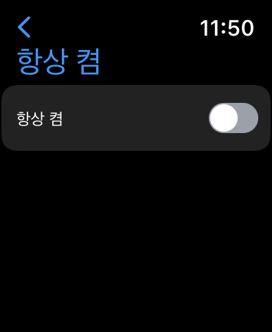 '항상 켬'을 꺼두게 되면 애플워치 화면에 아무것도 보이지 않고 검정화면만 뜹니다.