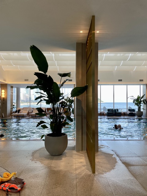 또 반대로 호텔의 실내 수영장을 이용하는 것도 추천드리며, 호텔 실내 수영장 역시 통창 너머로 해운대 오션뷰를 즐길 수 있습니다.