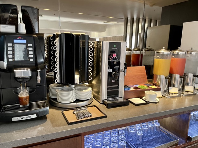 클럽라운지에 들어서면 커피를 비롯 여러 음료와 쿠키, 과일 등을 맛볼 수 있습니다.