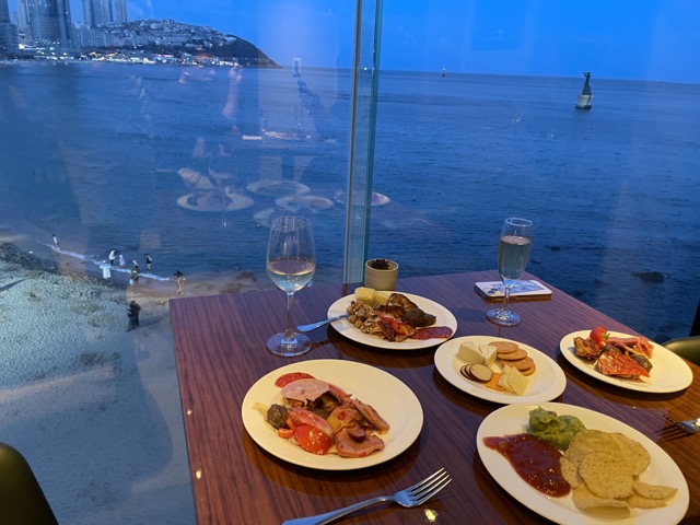 해피아워를 즐기다보면 창밖으로 해가 저물어가는 해운대를 마주하게 됩니다.