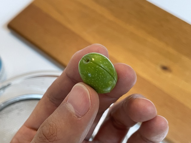 올리브 열매가 생각보다 탄력이 있어서 칼집을 내더라도 흐트리지지 않고 모양이 잘 유지됩니다.