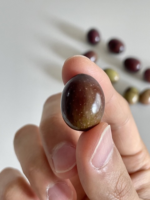 표면을 다 닦에내고 보니 겉표면에 광택이 나면서 내가 알던 올리브나무 열매의 빛깔과 자태가 나옵니다.