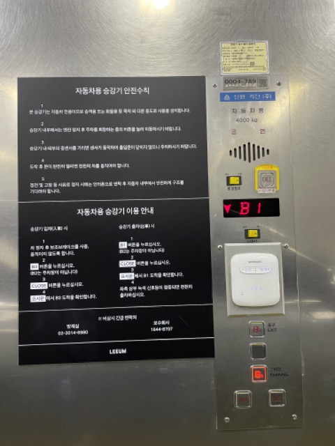 리움미술관 차량 주차는 차량전용 엘리베이터를 이용하게 되는데요,