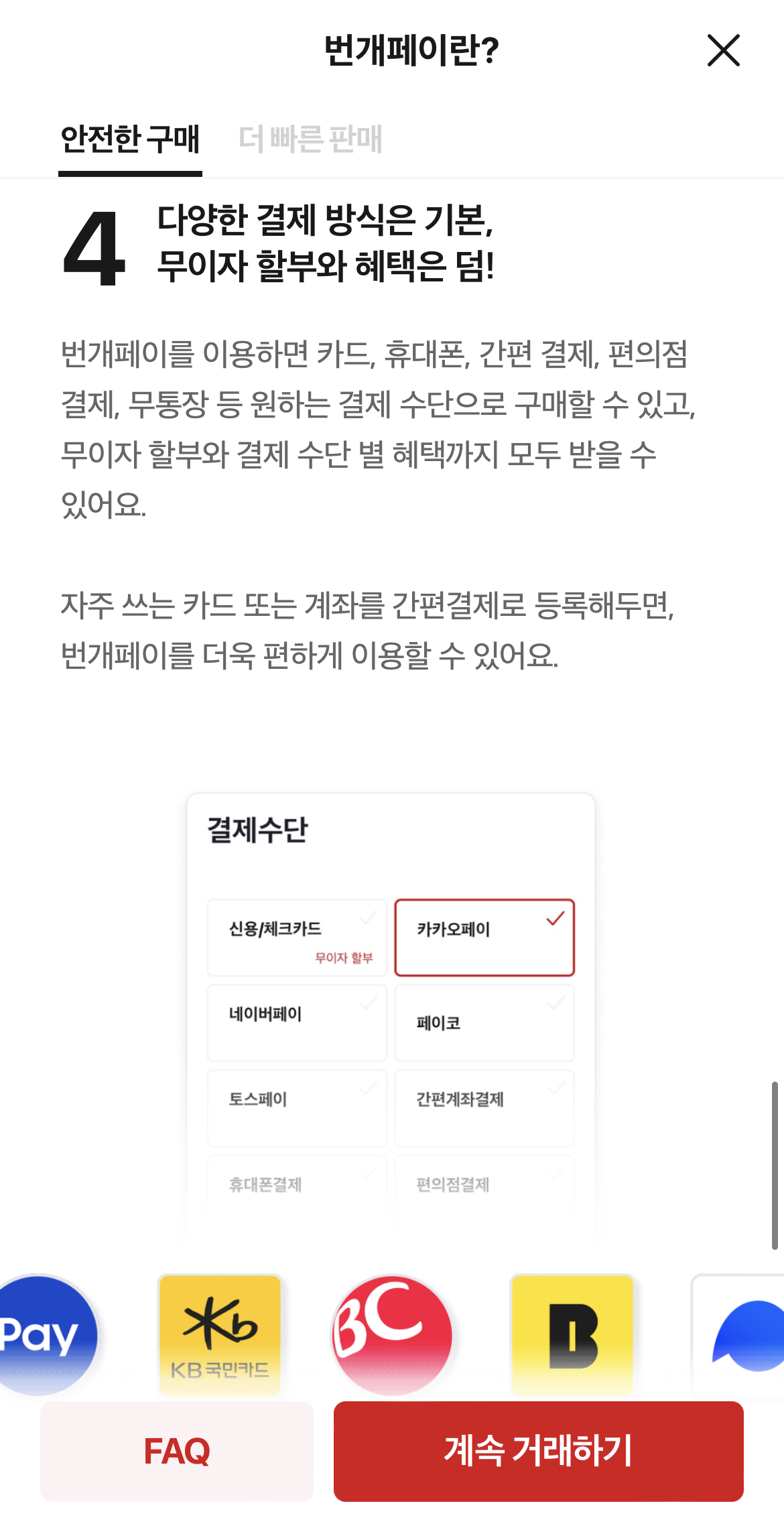 하지만 결제를 진행하면서 물건은 받지 못하는건 아닐까라는 걱정도 앞서게 되고 사기로부터 안전한지 불안하기도 합니다. 하지만 번개페이는 그런 점을 안전장치로 잘 막아두었네요!
