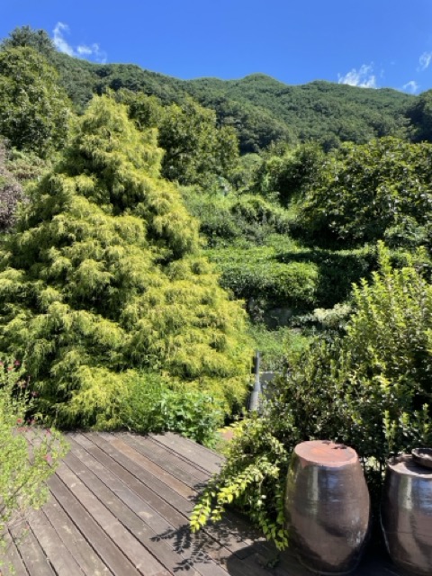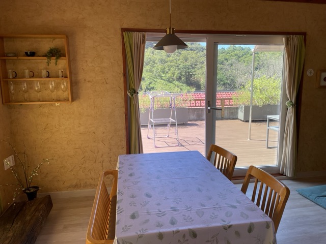 야외테라스는 고기도 구워먹을 수 있고 유로제다의 녹차밭 뷰도 야외에서 감상할 수 있습니다.