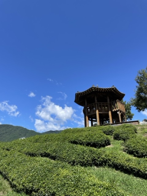 유로제다 펜션 뒷편으로는 화개천 주변 전경을 모두 감상할 수 있는 정금차밭 정자(정금정)가 있습니다.