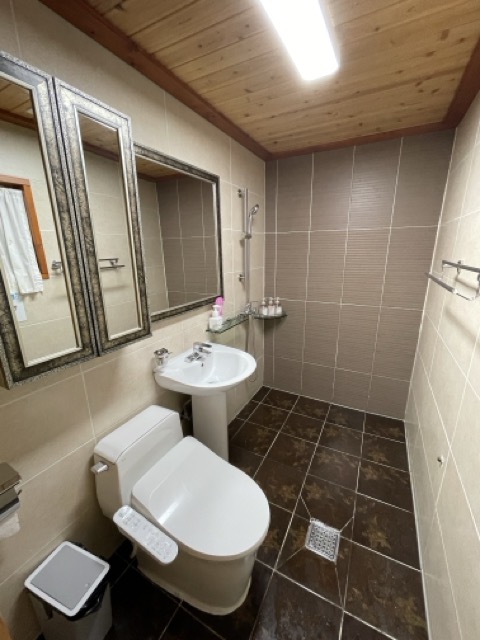 화장실은 깨끗하게 정리정돈 되어있었고, 치약 칫솔, 샴푸, 폼클렌징, 바디워시, 수건 등 모든 어메니티는 구비되어 있습니다.
