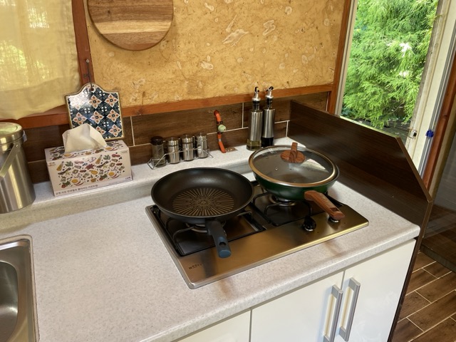 1층 숙소 내부로 들어오면 투숙객이 직접 음식을 조리해서 먹을 수 있도록 기본적인 조리도구는 갖춰져 있고요,