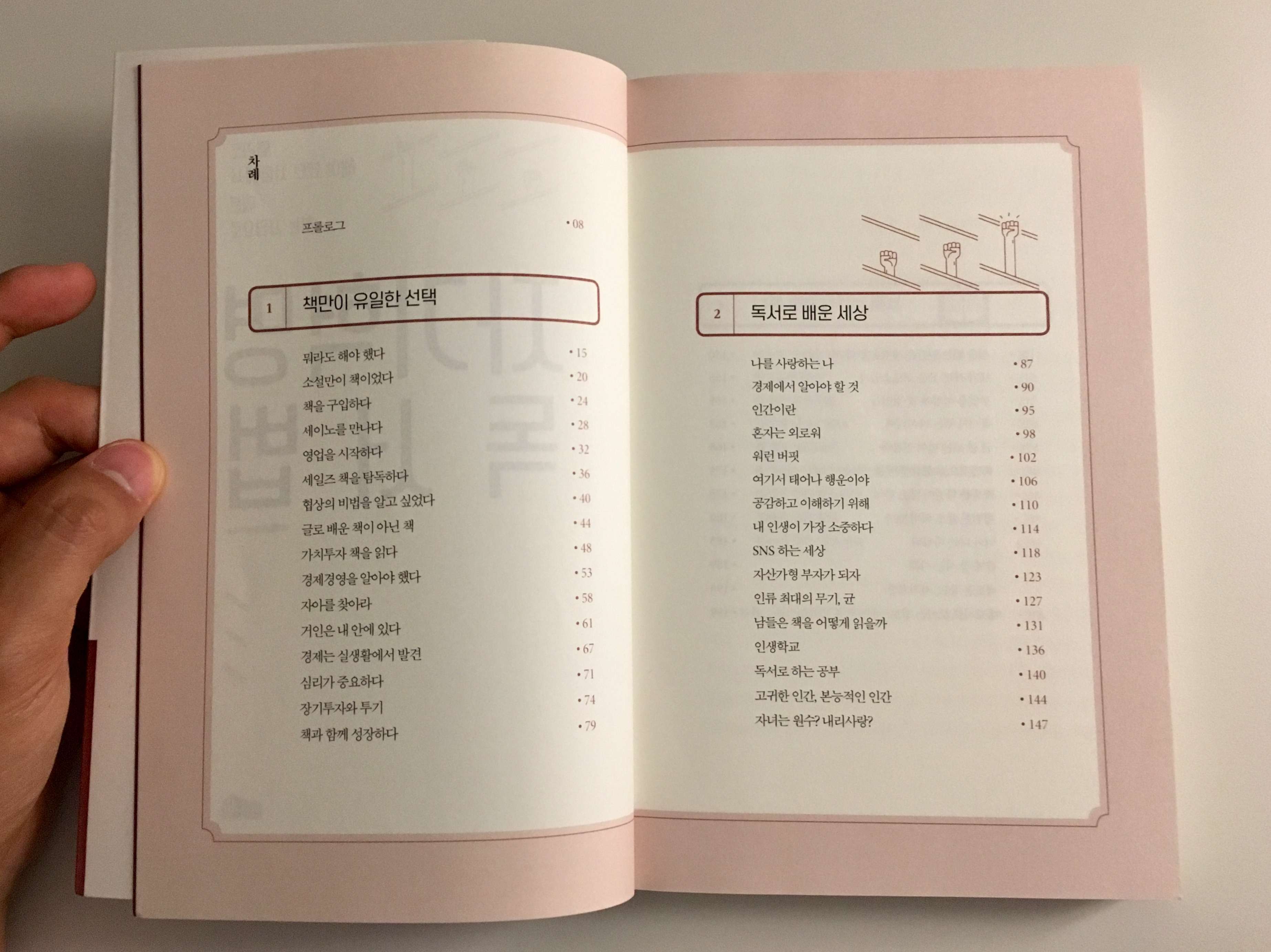 책의 구성은 저자가 책을 만나면서 변화되는 삶을 그린 1장과 인생의 다양한 소재와 에피소드에서 배운 교훈으로 이뤄진 2장, 그리고 어떤 책을 선택하고 책을 활용하는 방법을 담은 3장으로 구성되어 있습니다. 굳이 책을 좋아하는 사람이 아니더라도 갓 호기심을 갖고 독서 생활을 시작한 분들에겐 부담 없이 읽기에 좋은 책입니다. ^^