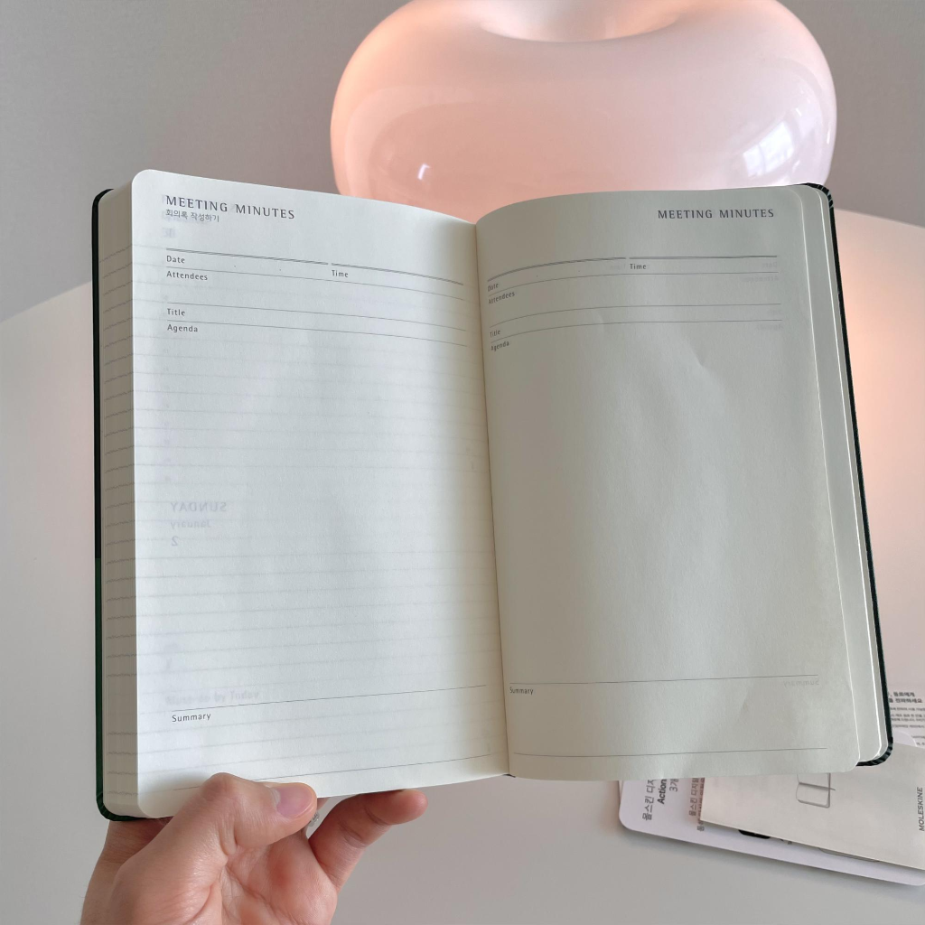 이건 뒷부분에 회의록란인데 쓰는 일이 없었으면 좋겠습니다. ^^;;; 아침 회의 많은 회사치고 잘 되는 회사가 있을까요?! ㅋㅋ 차라리 스터디원들과 좋은 아이디어를 주고받거나 영감을 받을 때 쓰시면 좋을 것 같아요!