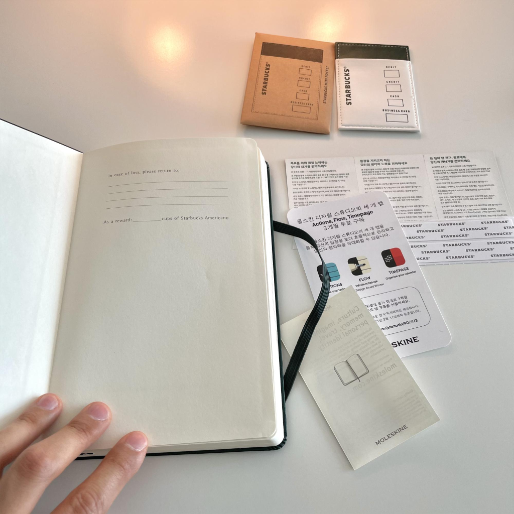 스타벅스 다이어리는 몰스킨과 협업으로 제법 쓸만하고 좋은 퀄리티를 보여주고 있는데요 ^^ 특히 띠지, 밴드, 중간 이상의 퀄리티, 만듦새, 그리고 스타벅스 브랜드 가치가 멋을 더해줍니다!